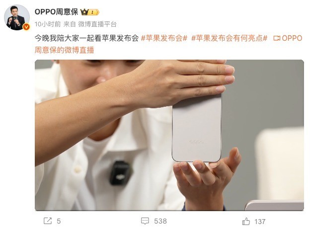 【新金宝客服资讯】9月10日消息,苹果今日凌晨正式发布了iPhone 17系列新品。而在同一时间,OPPO Find系列产品负责人周意保一边观看苹果发布会直播,一边透露了即将推出的Find X9系列的诸多亮点。从爆料内容来看,Find X9系列在多个方面都展现出强劲的竞争力,甚至在某些配置上超越iPhone 17系列。